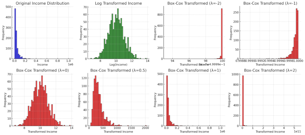 \frac{x^{\lambda} – 1}{\lambda}, & \text{if } \lambda \neq 0 \\