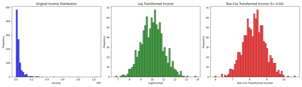 axes[2].set_title(f"Box-Cox Transformed Income (λ={lambda_bc:.2f})")