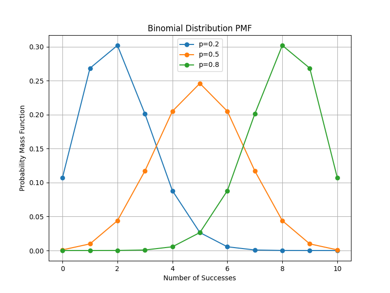 $$P(X = k) = \frac{n!}{k!(n-k)!} p^k (1 – p)^{n – k}, \quad k \in {0, 1, \dots, n}, \quad 0 \leq p \leq 1$$